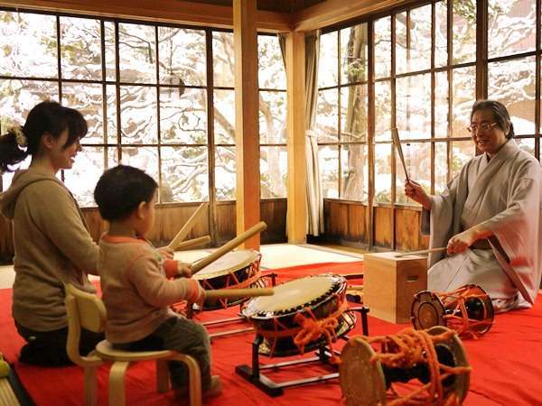 At our inn, guests can experience traditional Japanese culture, such as Japanese tea ceremony and flower arrangement, and traditional Japanese music, such as shamisen (Japanese guitar) and taiko (Japanese drum).
