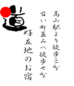 JR高山駅から徒歩3分・古い町並みへ徒歩7分の好立地でありながら、たいへん静かな旅館です。